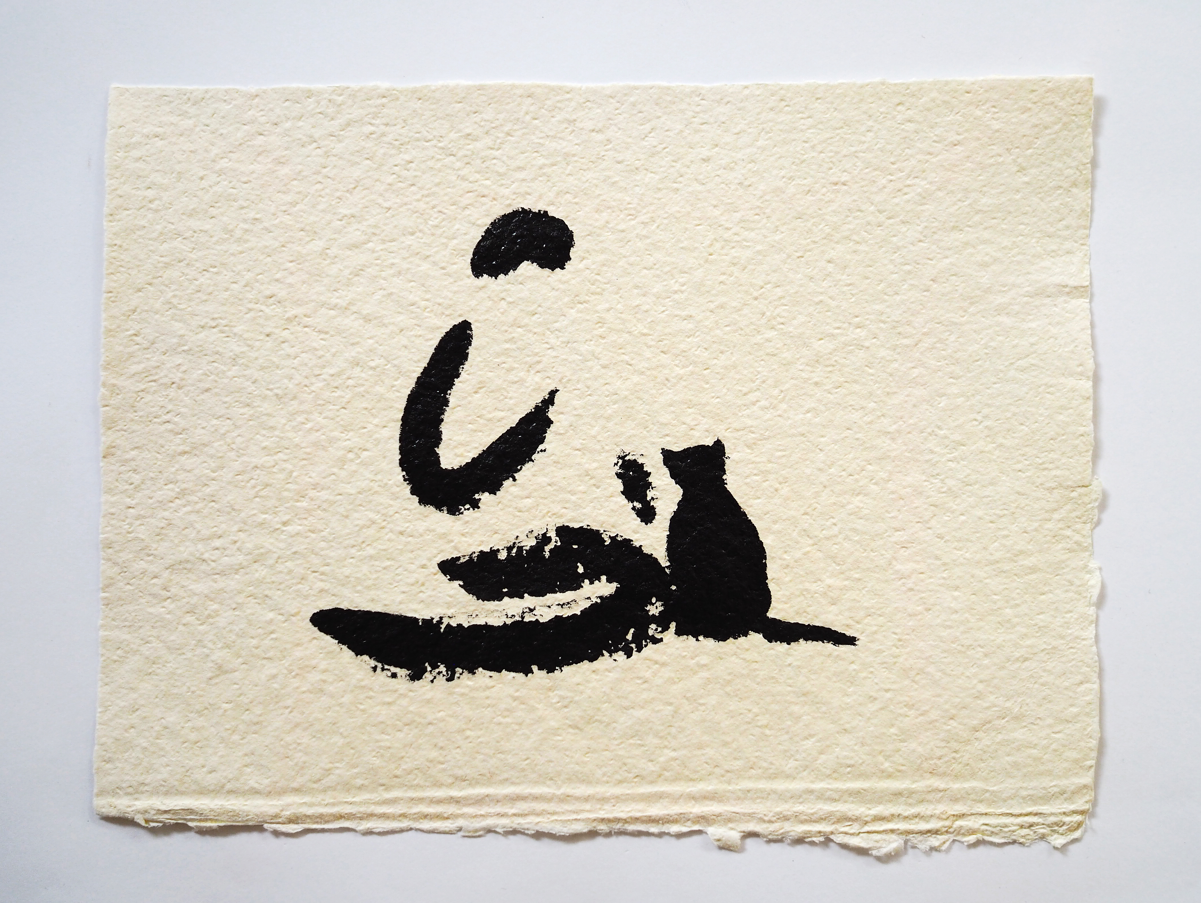 9 Talking to the cat 2025 Ink on Fabriano handmade cotton rag paper 25 x 31 cm <back to Xmas calendar